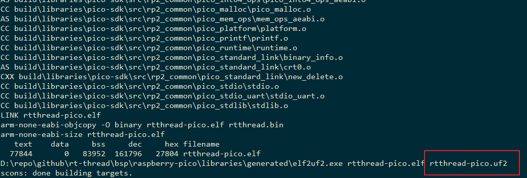 • Copy the rtthread-pico.uf2 file to the "RPI-RP2" disk