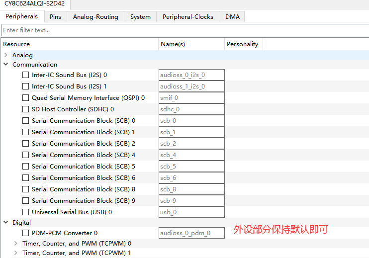 首次移植,需要使用串口外设(只有移植新的系列才需要做此步骤,同 PSOC6 系列无需此步骤)