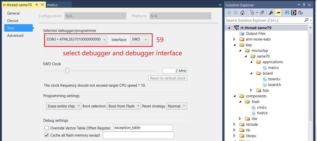 Enter rt-thread-xxx/bsp/microchip directory and copy same70 folder and rename it to same70q20.