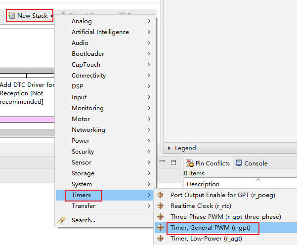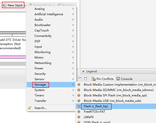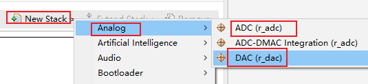 选择 Stacks 配置页,点击 New Stack 找到 UART。
