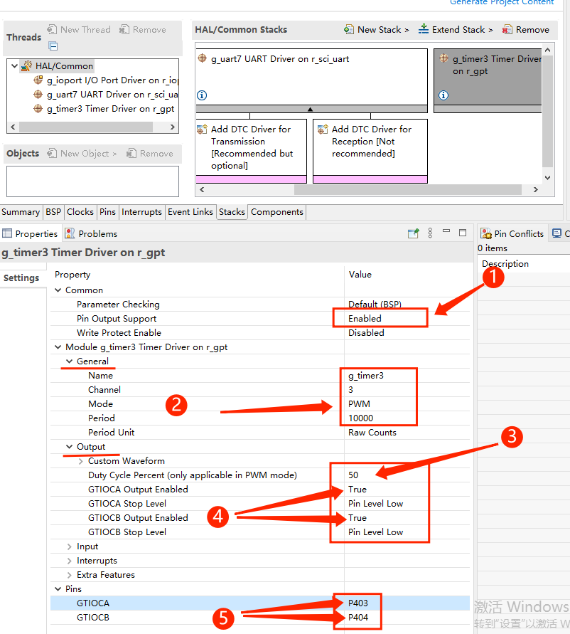 Common ->Pin Output Support 设置为 Enable ,以开启 PWM 波形的输出。