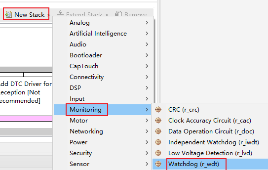- 配置 WDT,需要注意在 RT-Thread 中只使用了一个 WDT 设备,所以没有对其进行编号,如果是新创建的 WDT 设备需要注意 name 字段,在驱动中默认使用的是
