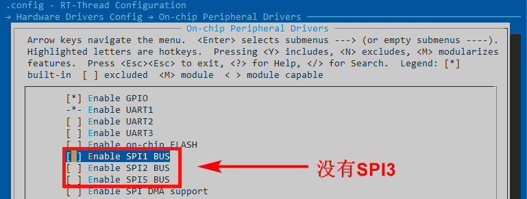 经过上一步的修改,此时重新打开 ENV 工具,在 menuconfig 中就会出现添加的 SPI3 的配置项。