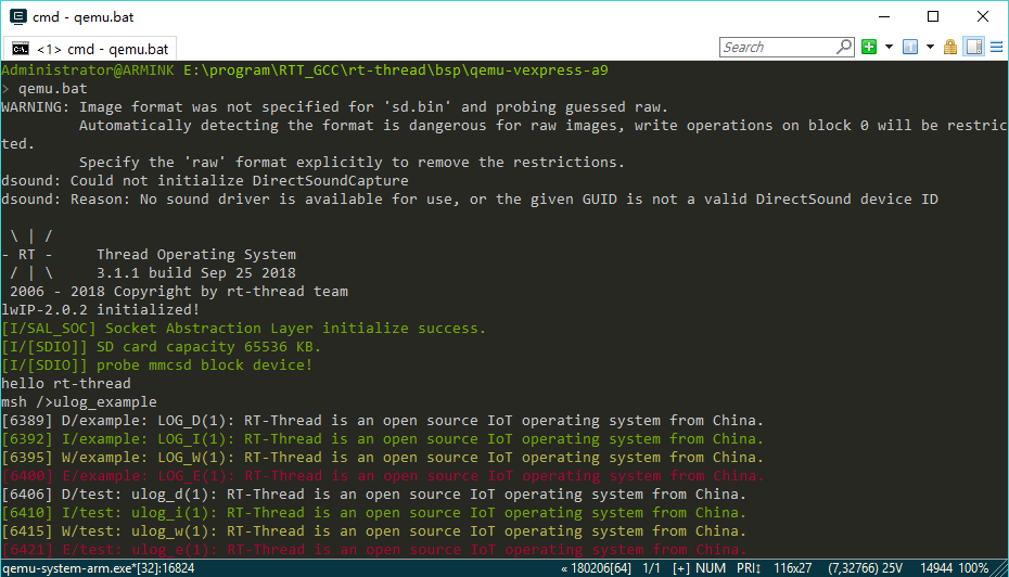 syslog() is very simple to use. The input format is the same as the printf function. There are also syslog routines in ulog_example.c that work as follows in qemu: