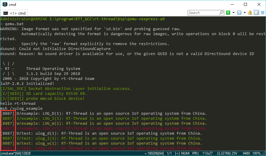 Q: Warning when running:Warning: There is no enough buffer for saving async log, please increase the ULOG_ASYNC_OUTPUT_BUF_SIZE option。